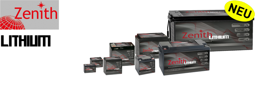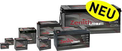Die ZLI Serie der ZENITH Baureihen ist die neueste Innovation innerhalb der Zenith Familie. Die ZLI Serie sind Lithium Batterien der neuesten, innovativsten Generation, die bis zu 100% entladen werden können. Dank der neuesten LiFePO4 Technik sind die Batterie zudem schnelladefähig (1h) und das bei 100% Entladung. Auf die Lebensdauer betrachtet, sind die jeweiligen Ladevorgänge gegenüber herkömmlichen